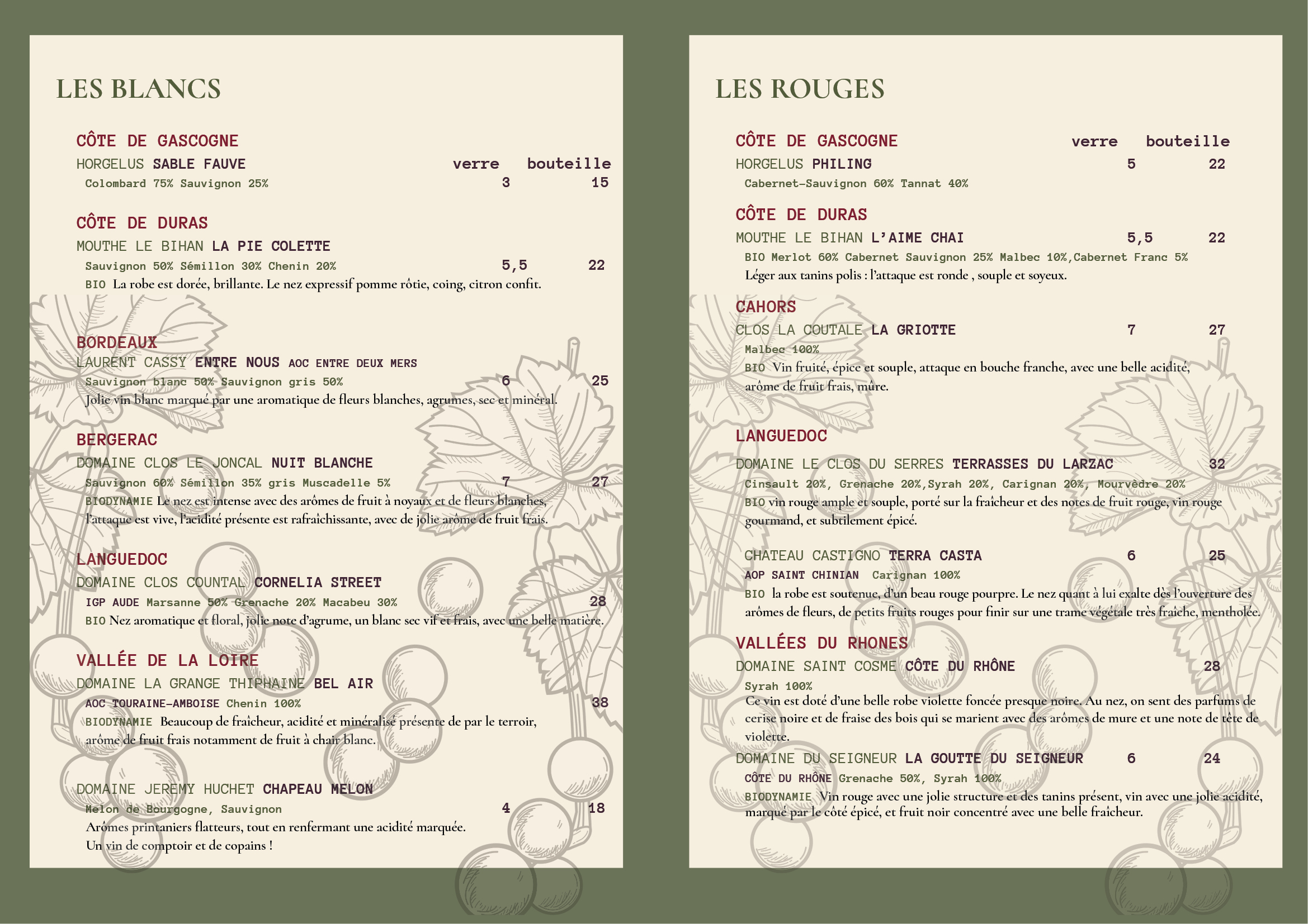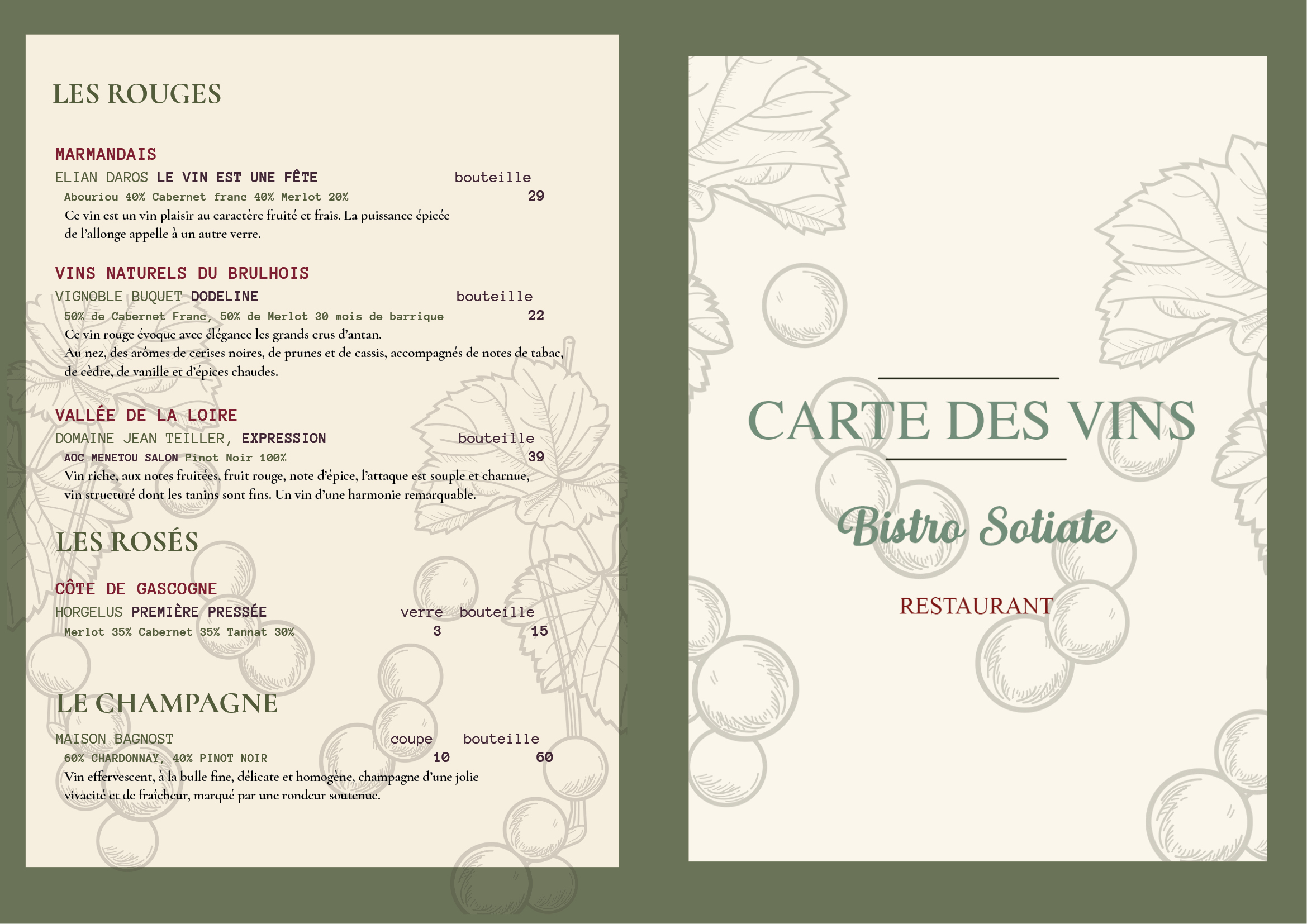 Le Bistro Sotiate vous propose une carte qui change au rythme des saisons.