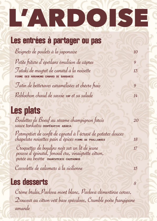 menu donné à titre indicatif sous réserve de modifications du chef…
